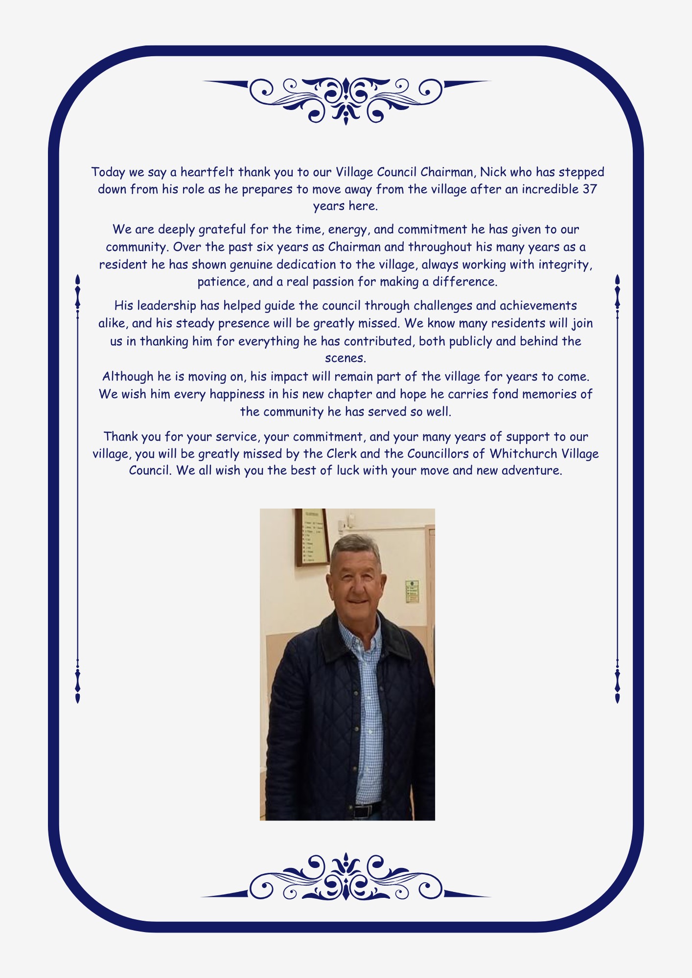 Posted on 12th February 2026 by WhitchurchVillageThank you to our Chairman Nick Kirk for his 6 Years of service.