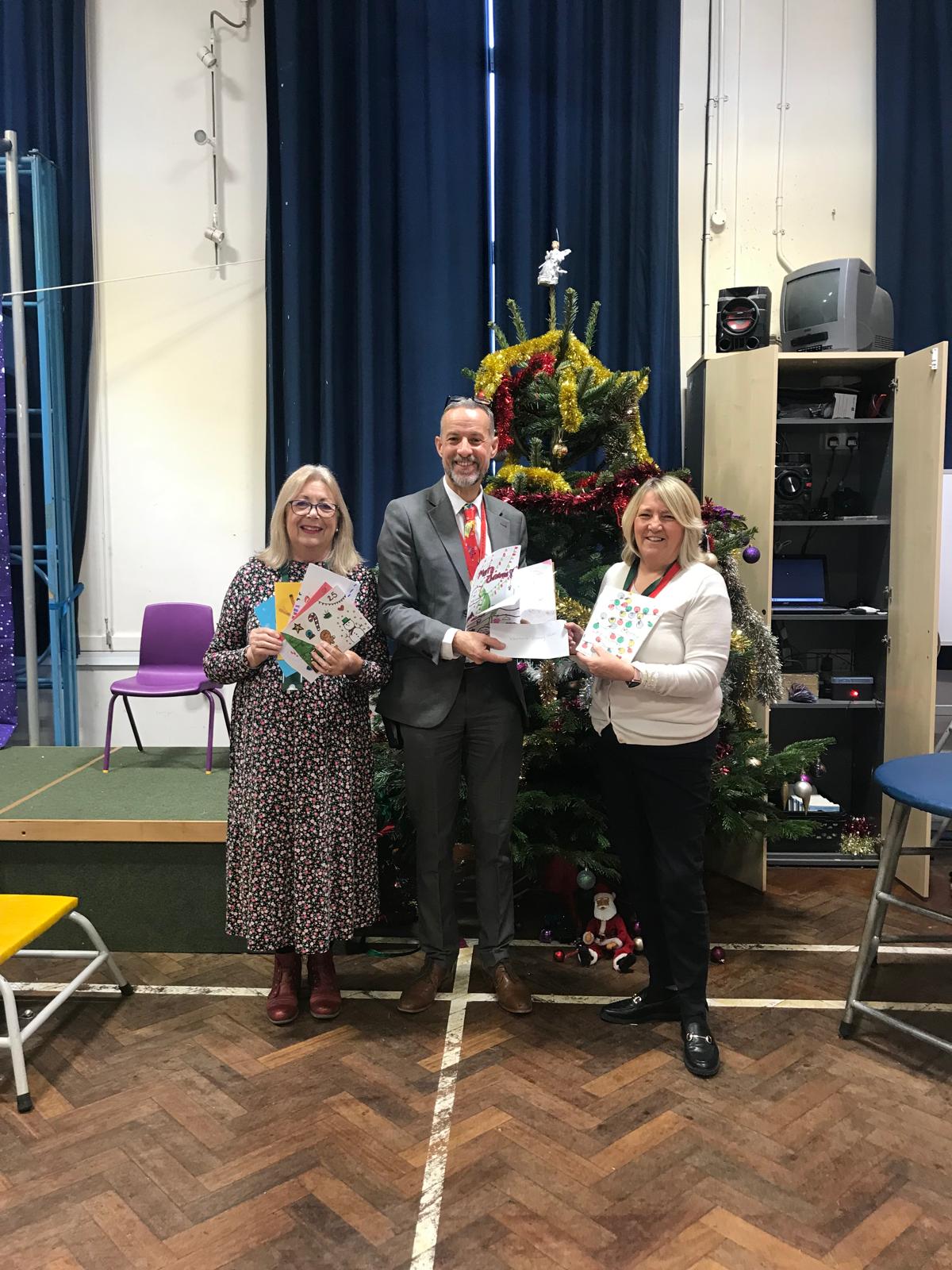 Village Councillors today visited Whitchurch Primary School to award the prizes for the Christmas card competition. Head Teacher Mr Hornsby also received a donation for the school towards resources. Congratulations to all those who participated and especially the class winners who received vouchers.